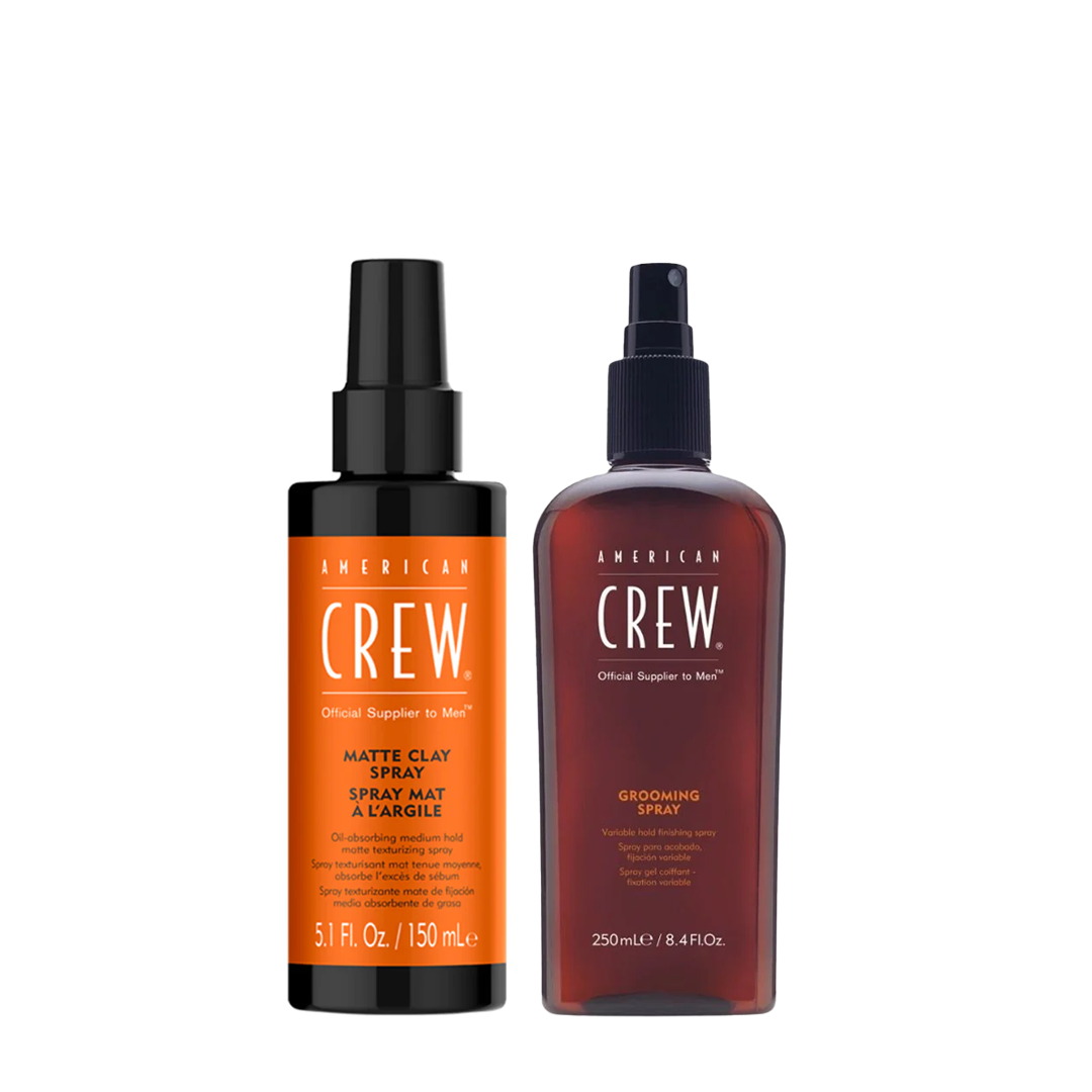 Apply American Crew Grooming Spray for a touchable, long-lasting finish.
