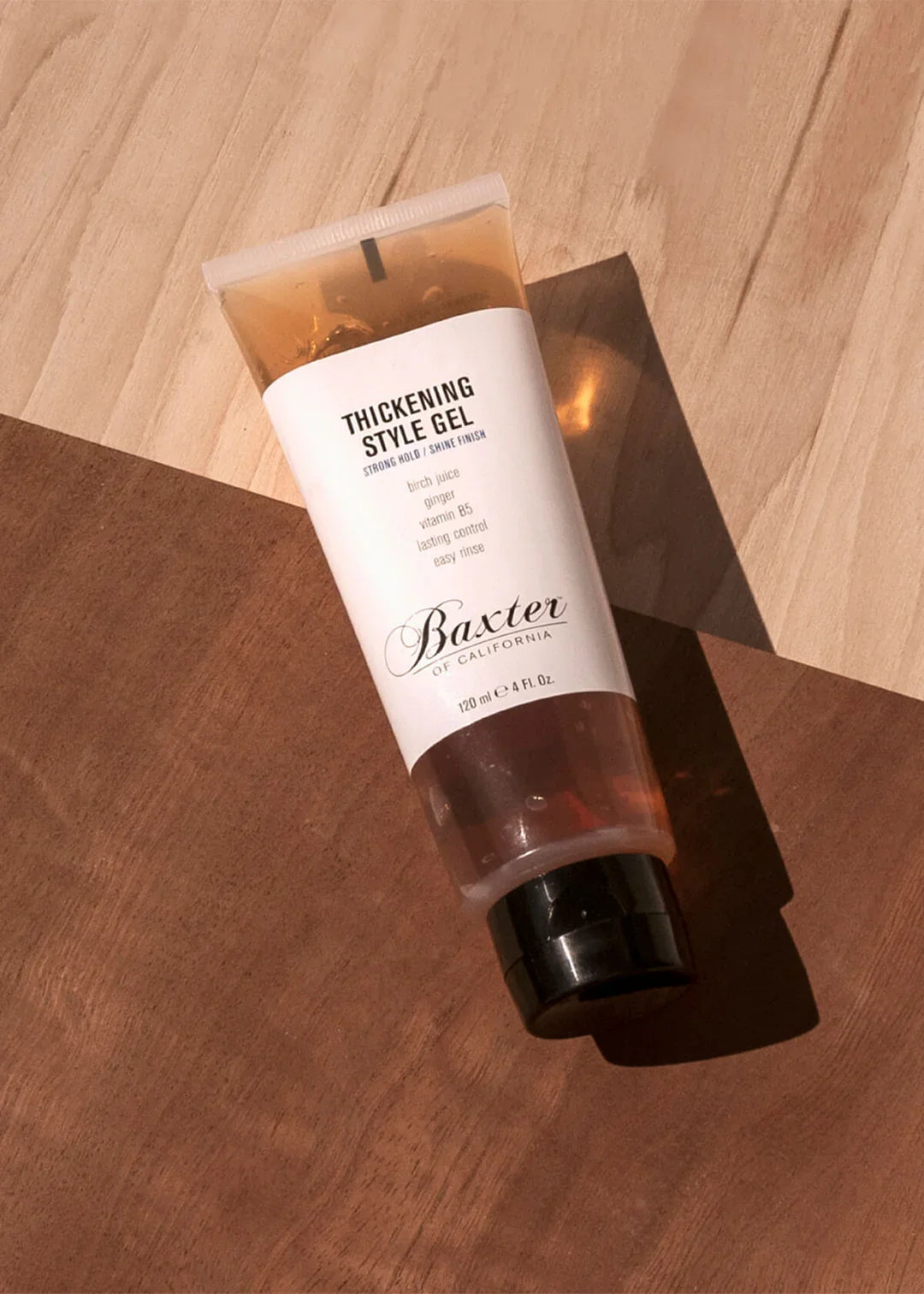 The Baxter of California Thickening Style Gel 120ml is a premium styling gel designed to add volume and hold to your hair.