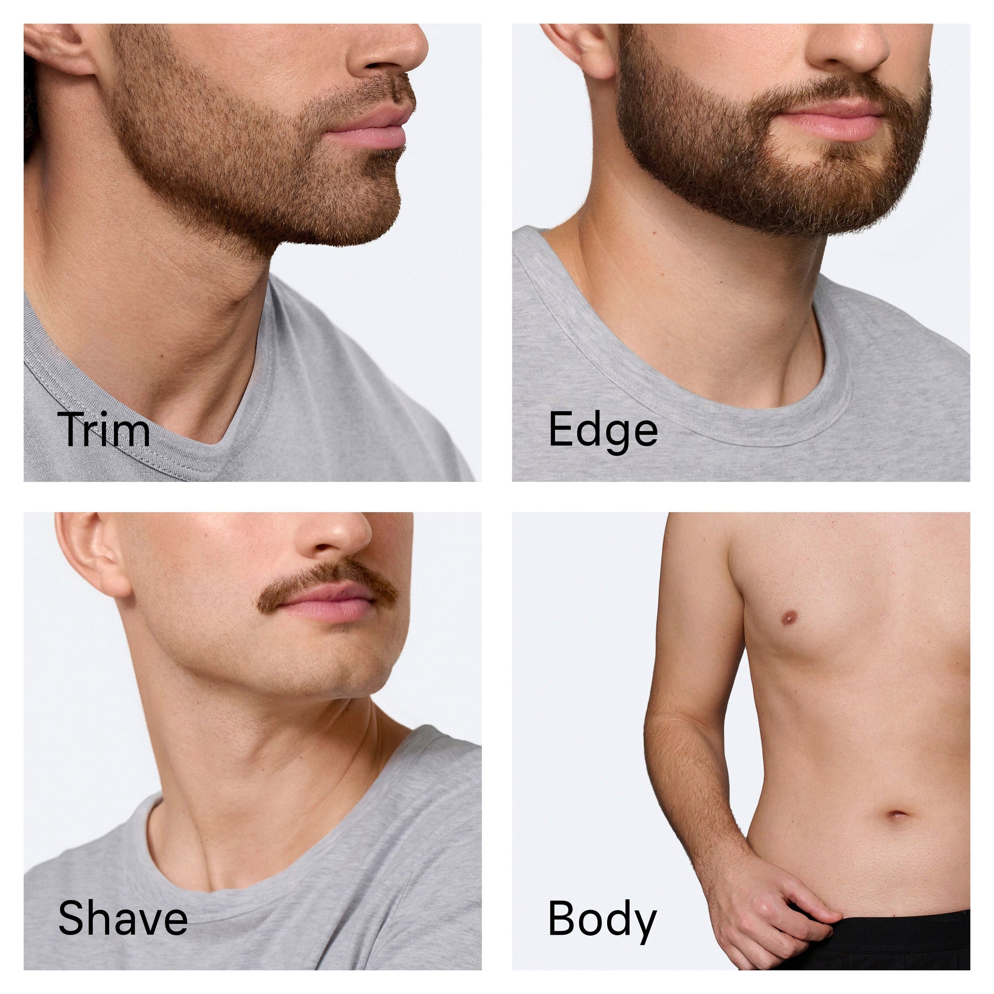 Trim, style, shave with one tool: beard trimmer, body shaver and electric razor for men. For face (1, 2, 3, 5mm combs) and body (sensitive and 3mm combs).