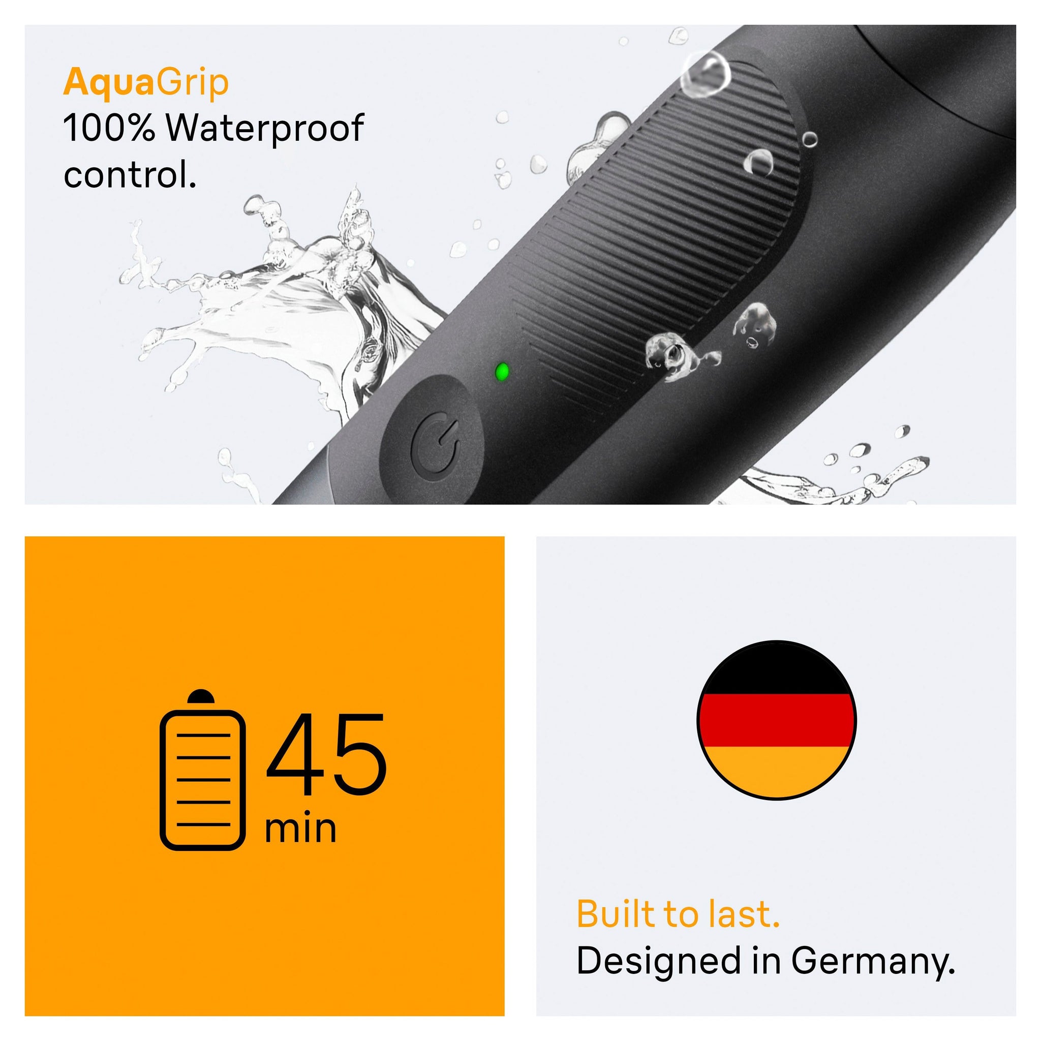 Easy & comfortable: easily achieve great results and precise lines, even in tricky areas, with the pivoting Flex Head and 2-way combs that trim in any direction.