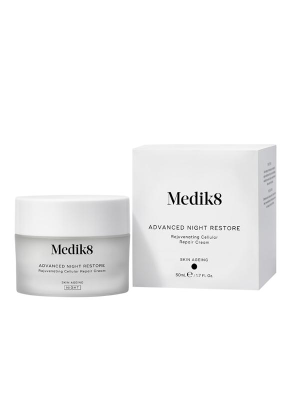 The Medik8 Crystal Retinal 3 Night Serum 30ml is a groundbreaking overnight serum that features 0.03% stabilised retinal, a powerful derivative of vitamin A that delivers results comparable to clinical-grade vitamin A up to 11 times faster than classic forms of retinol. This serum visibly minimizes fine lines and wrinkles, firms and plumps the complexion, and resurfaces skin texture while hydrating the skin at every level to deliver a supple, even-toned, more youthful-looking complexion. The Medik8 Advanced Night Restore Cream 50ml is an advanced antioxidant night cream that works while you sleep to restore and deeply hydrate the skin, featuring Medik8’s Midnight Repair Complex™, which includes powerful antioxidants such as dragon fruit extract, saskatoon berry, and restoring peptides to encourage cell repair throughout the night.