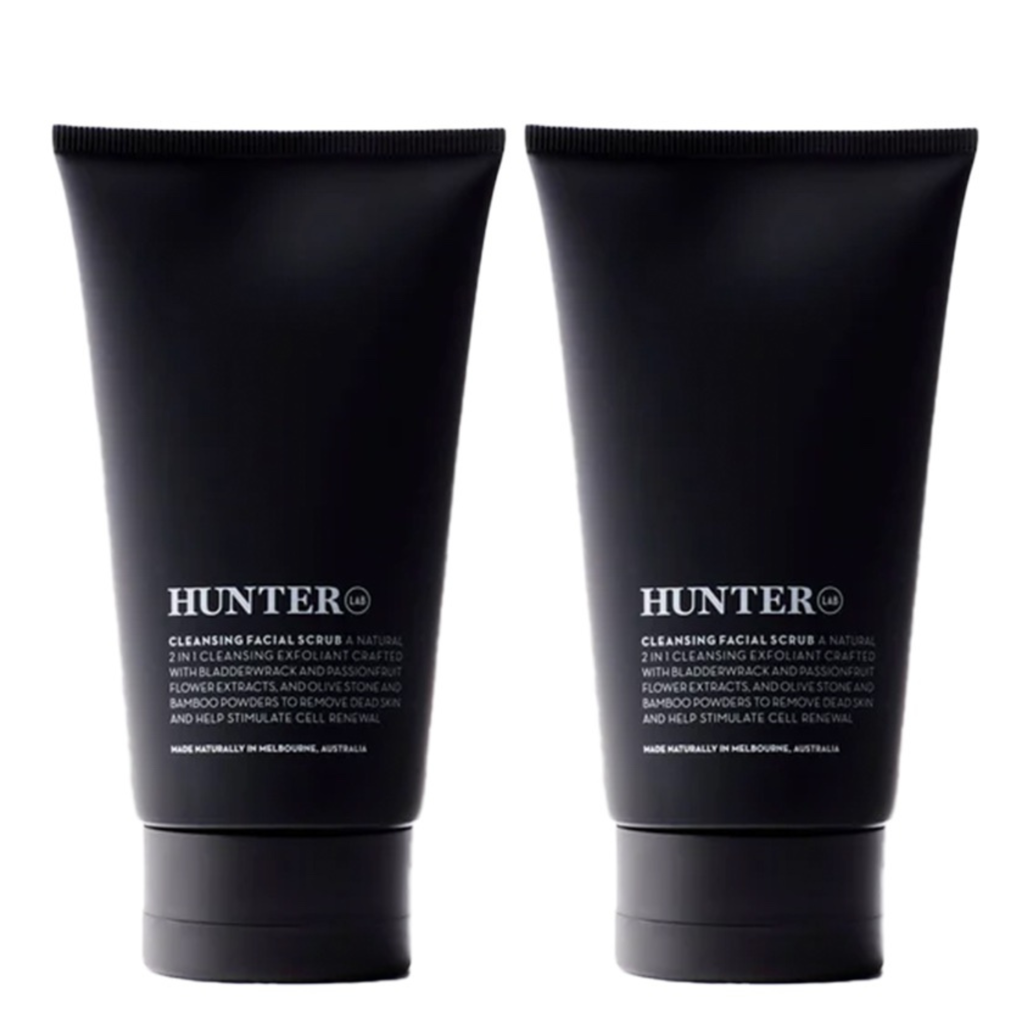The Hunter Lab Cleansing Facial Scrub 150ml Duo Bundle is a premium skincare set designed to rejuvenate and cleanse your skin.