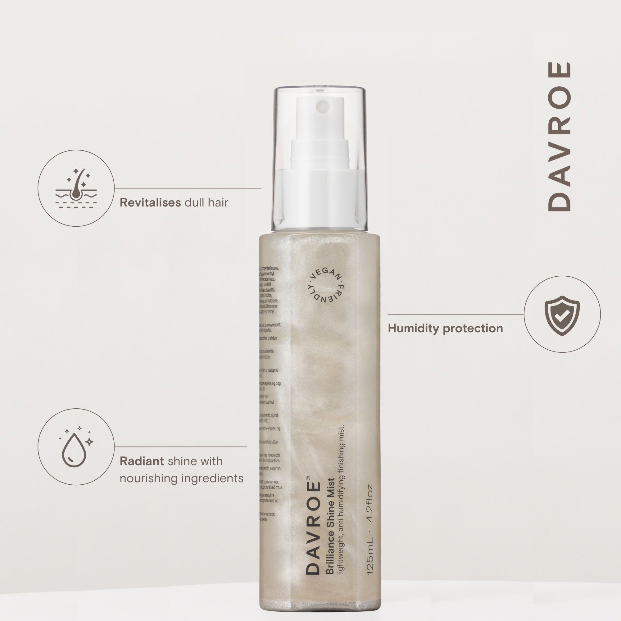 What are the features and benefits of Davroe Brilliance Shine Mist 125ml?