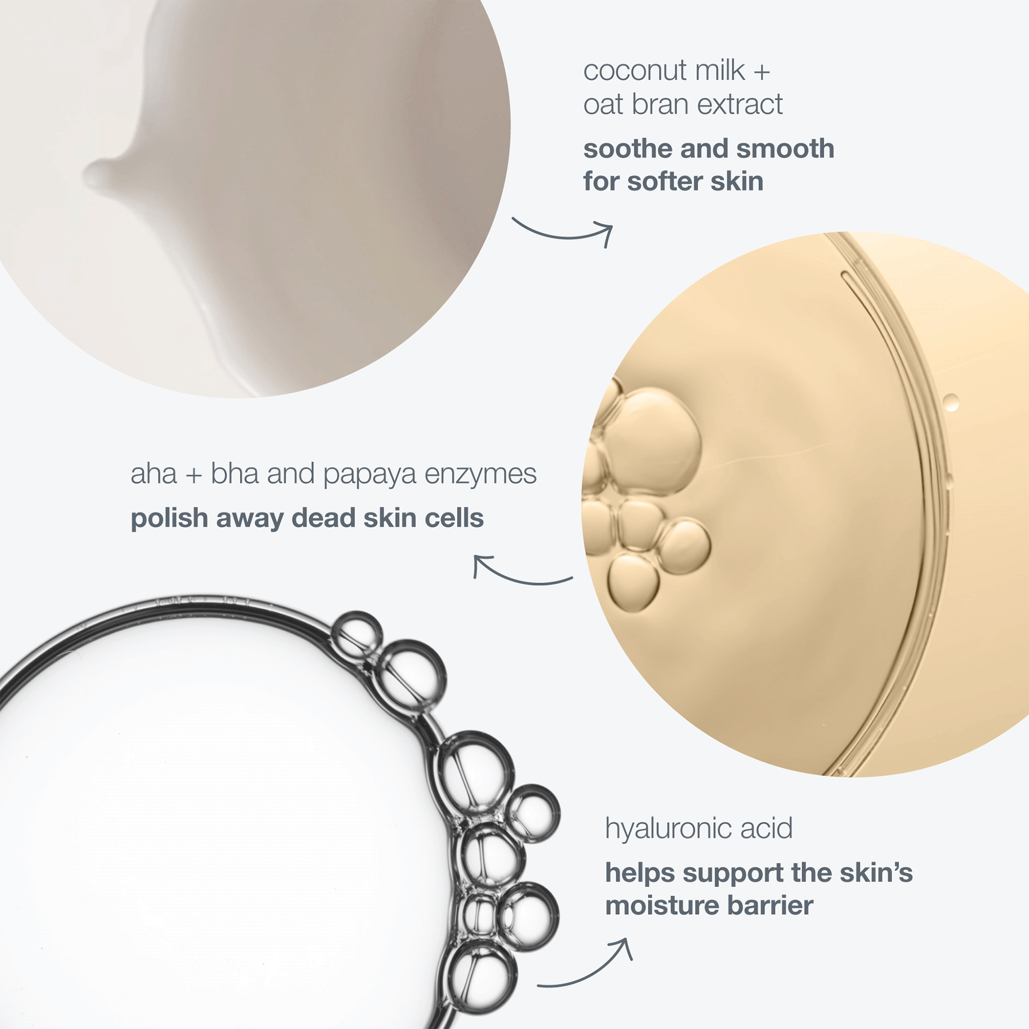 This vegan milky powder exfoliant activates upon contact with water, releasing botanical extracts to help polish away dead skin cells. Its blend with fruit-based Grape Extract and Arginine rich in Alpha Hydroxy Acids (AHAs) and Beta Hydroxy Acids (BHAs) work together with Coconut Milk for smoother, softer skin. Harvested from Papaya, Papain Extract provides exfoliating properties, helping to resurface the skin.