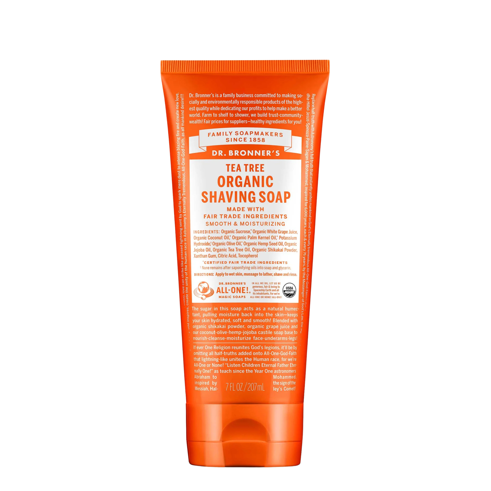 Dr. Bronner's Organic Shaving Soap Tea Tree 207ml is a natural and soothing shaving solution for a smooth and comfortable shave.
