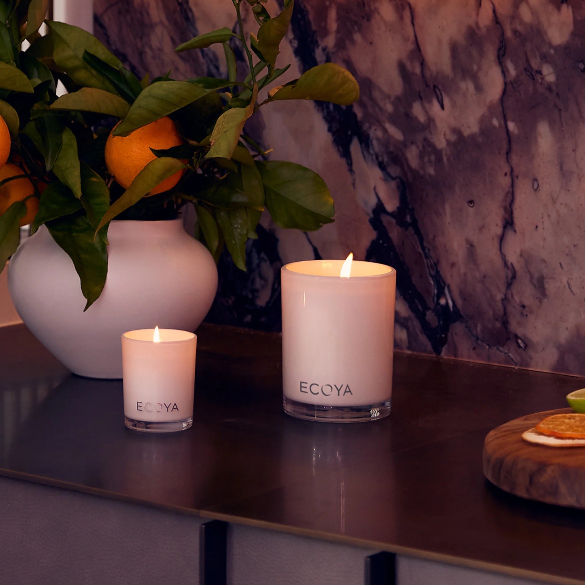This ECOYA Mini Madison Candle 80g - Mandarin Gin offers a refreshing and invigorating fragrance experience.