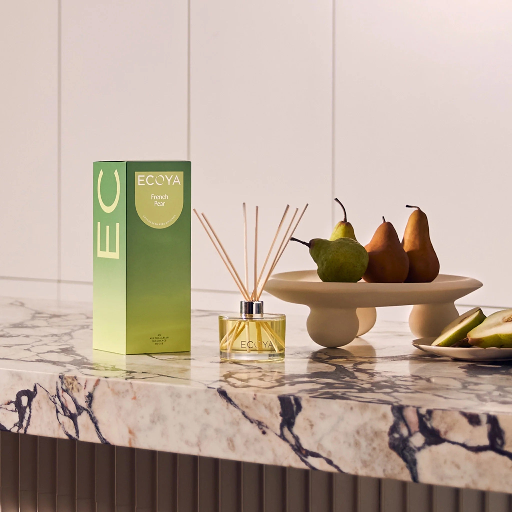 Experience the luxurious aroma of the ECOYA Reed Diffuser 200ml - French Pear, designed to infuse your space with a delightful fragrance.