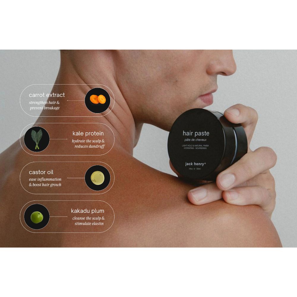 The Jack Henry Hair Paste 50g is a versatile styling product designed to provide a natural look with a firm hold.