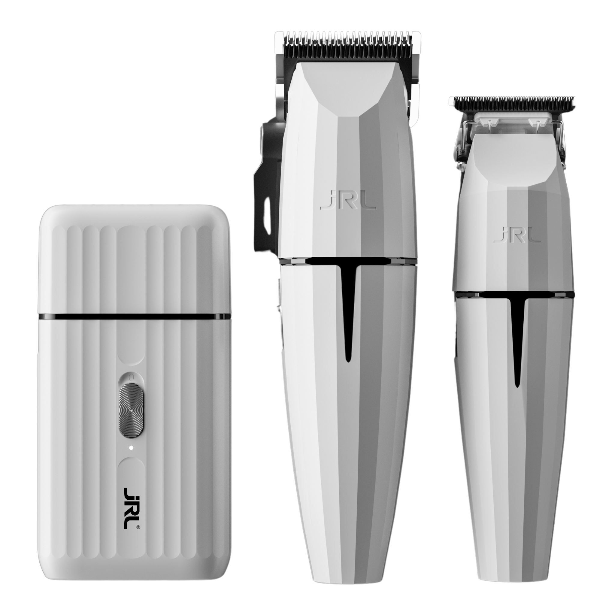 This exclusive kit includes three essential grooming tools, each crafted with the highest quality materials and advanced technology to ensure a superior grooming experience. The sleek Ghost White finish adds a touch of elegance, making it a perfect addition to any grooming routine. Whether you're a professional barber or someone who values a well-groomed appearance, the JRL Onyx Ghost Trio Kit offers unmatched performance and style.