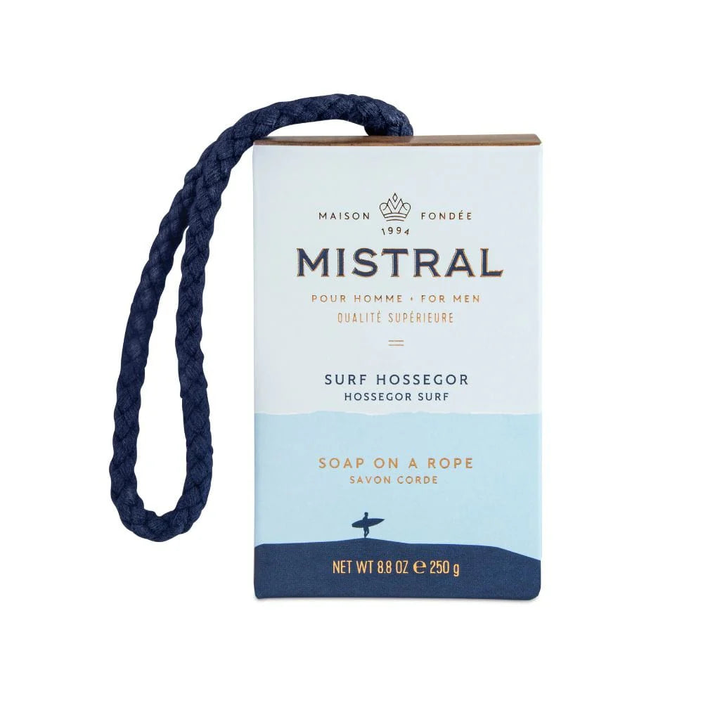 The Mistral Surf Hossegor Soap On A Rope 250g is a luxurious soap designed for convenience and style.